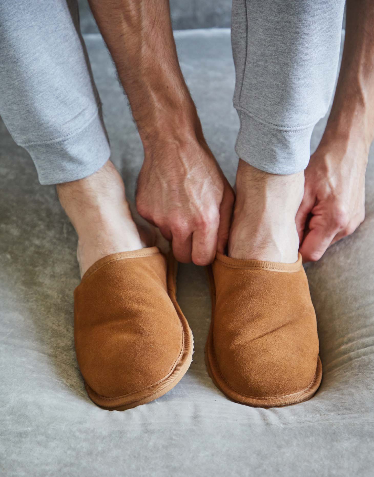 Men's Landy Sheepskin and Suede Slippers – Chestnut