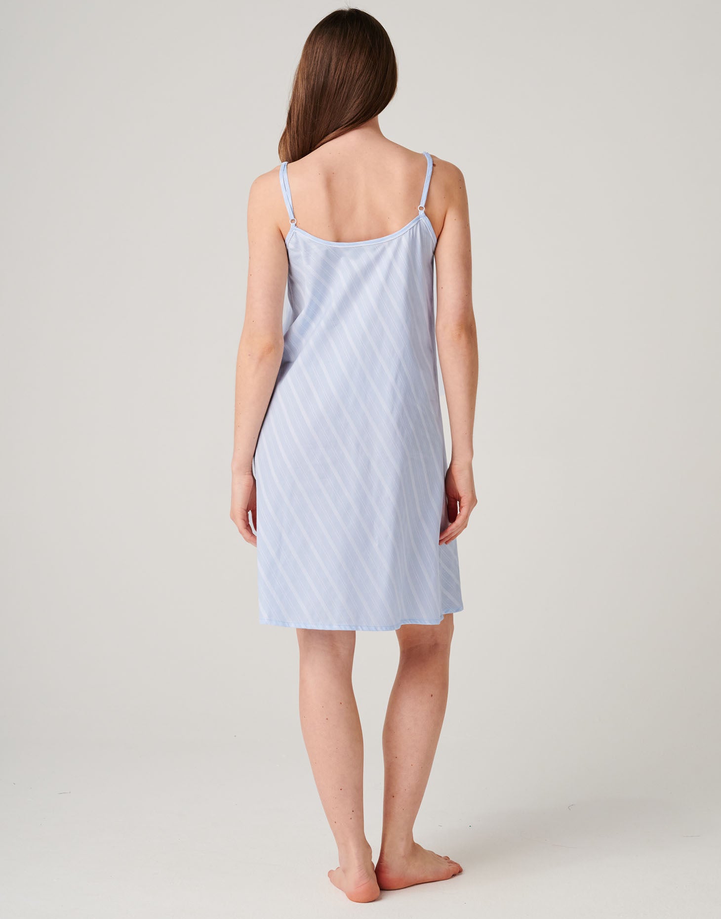 Women's Crisp Cotton Strappy Nightdress – Breezy Blue Satin Stripe