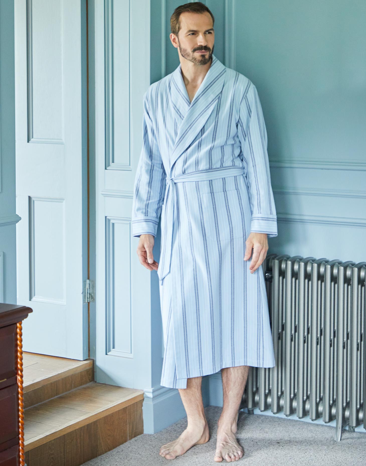 Men's Brushed Cotton Dressing Gown – Brighton Blue Stripe