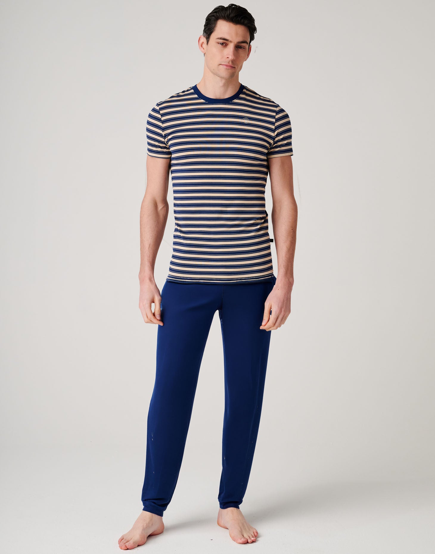 These men’s bamboo pyjamas are designed for easy comfort with a fresh, modern feel. Made from ultra-soft, breathable bamboo fabric, they’re naturally moisture-wicking and wonderfully gentle on the skin, helping you stay cool and comfortable all night long. The relaxed short-sleeve top pairs effortlessly with long-leg trousers, creating a laid-back fit that’s perfect for sleeping or unwinding at home. Finished with a comfortable elasticated waistband for flexibility and ease, this set is one you’ll reach for night after night. Comfortable, breathable, and effortlessly stylish.