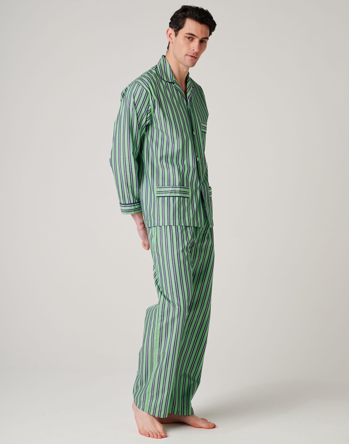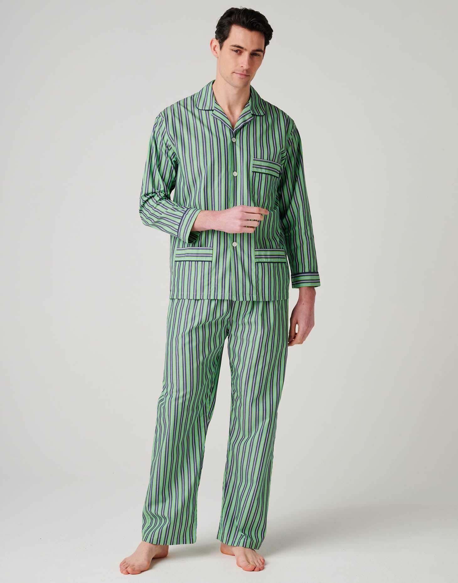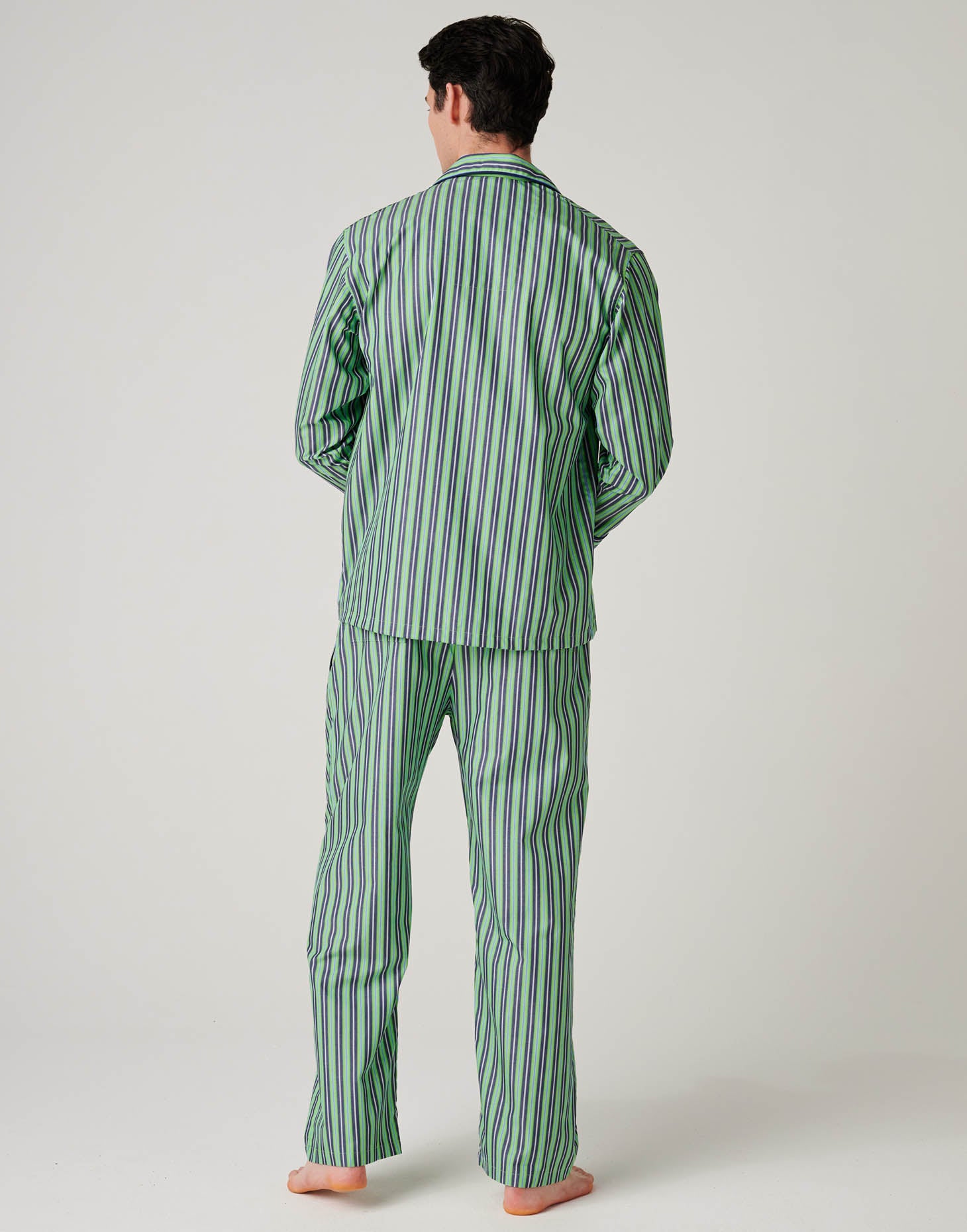 Men's Crisp Cotton Pyjama Set – Green Flash Stripe