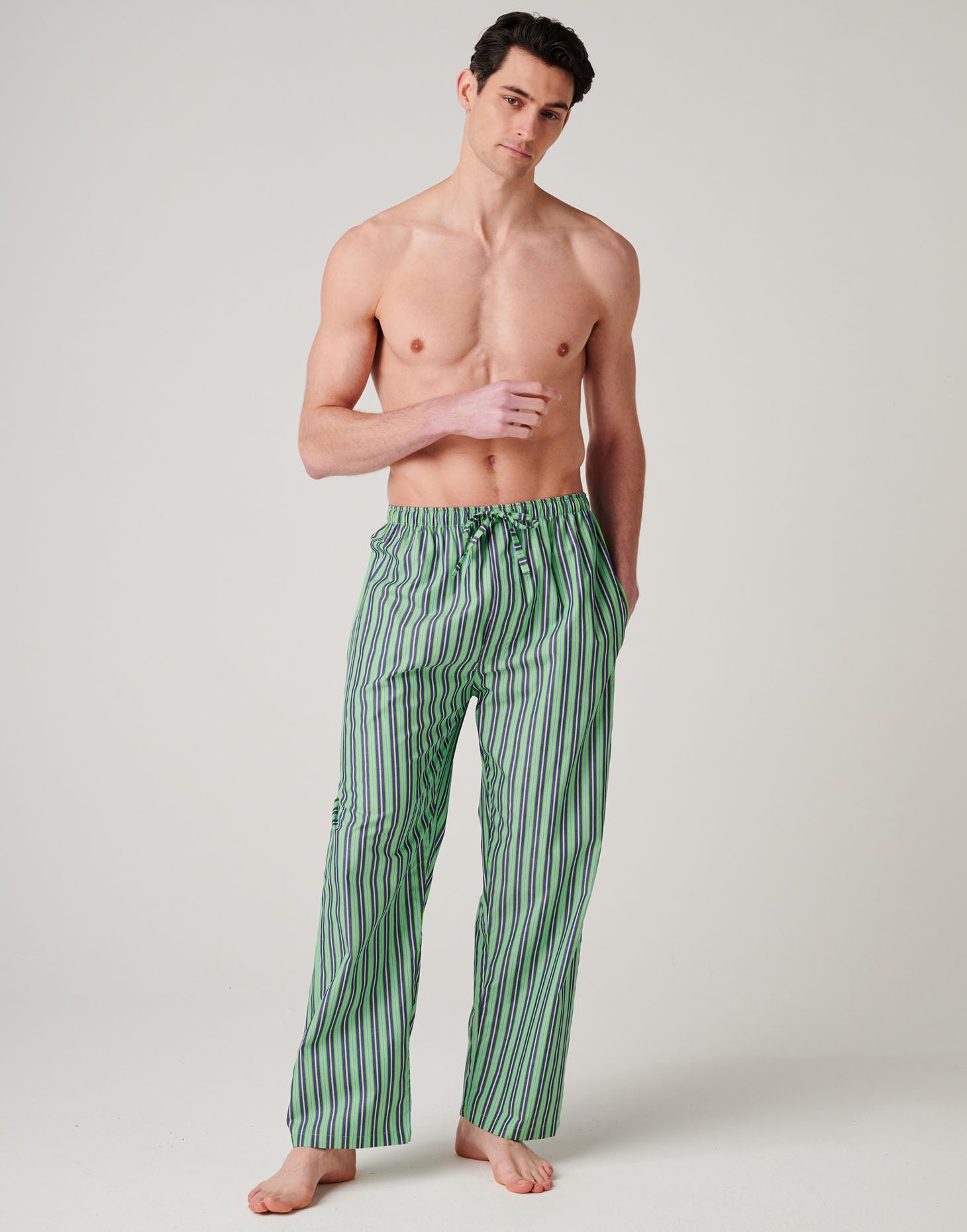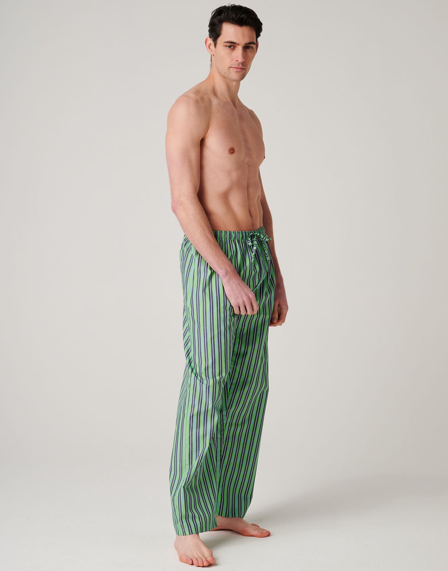 Men's Crisp Cotton Pyjama Trousers – Green Flash Stripe