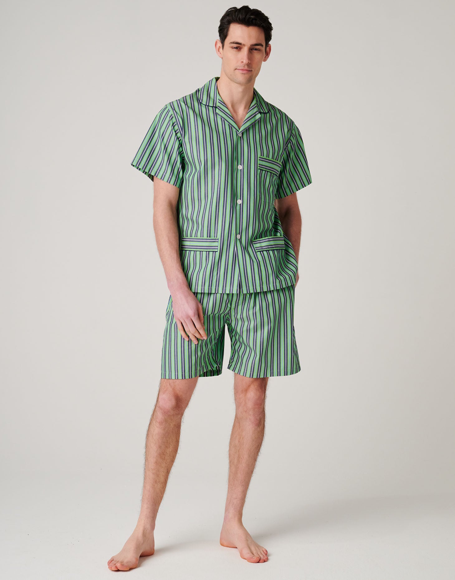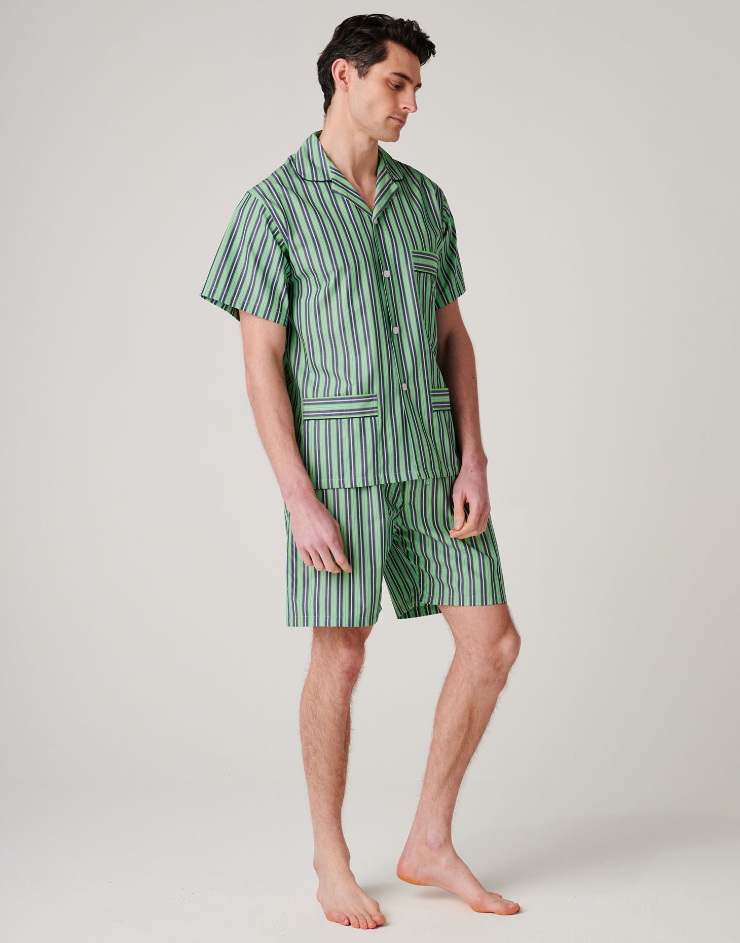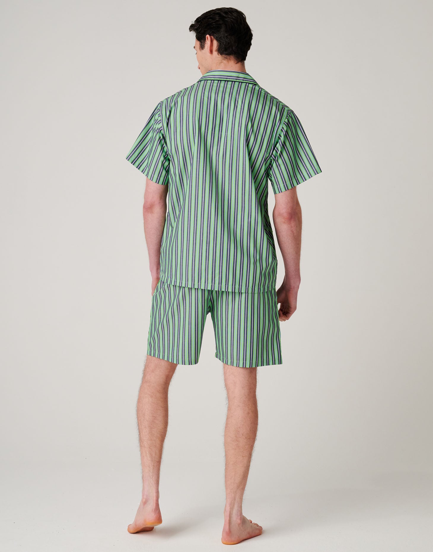 Men's Crisp Cotton Short Pyjama Set – Green Flash Stripe - SMALL is backordered and will ship as soon as it is back in stock.