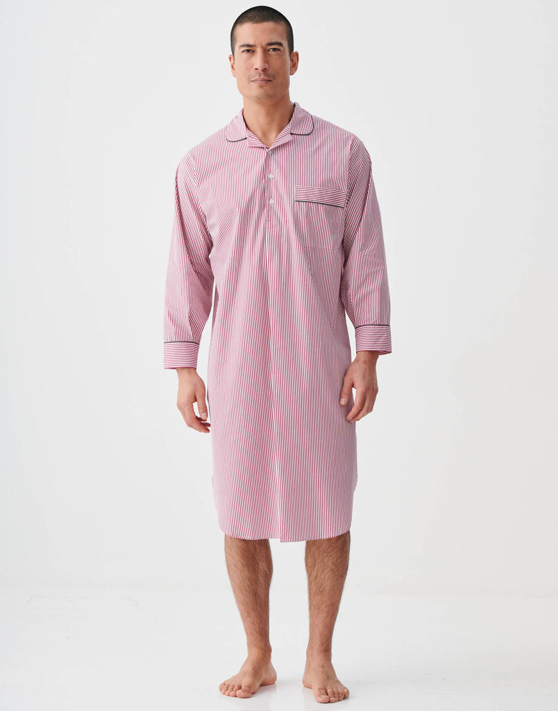 Men's Brushed Cotton Nightshirt – Chalk Stripe