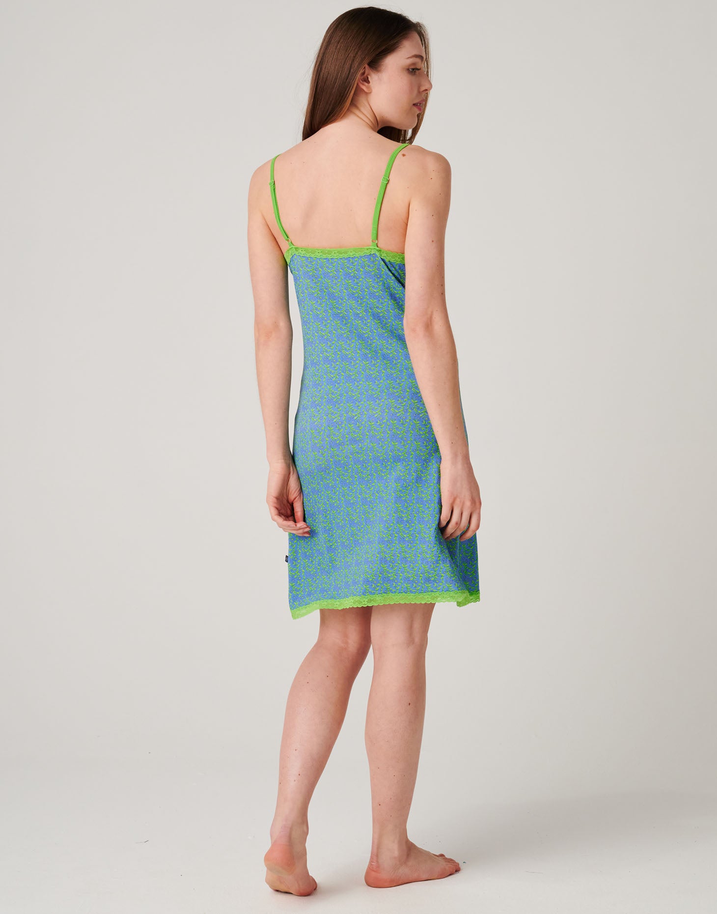 Our bamboo lace strappy nightdress in Blooming Fabulous is the perfect blend of comfort and effortless elegance. Designed with delicate adjustable straps and pretty lace detailing, it has a softly flattering shape that feels light and easy to wear. Made from ultra-soft, breathable bamboo fabric, it drapes beautifully against the skin with a smooth, silk-like feel. The Blooming Fabulous floral print adds a joyful pop of colour, while the naturally moisture-wicking fabric helps keep you cool and comfortable through the night. Ideal for sleeping, lounging, or slow mornings at home — light, feminine, and an absolute joy to wear.
