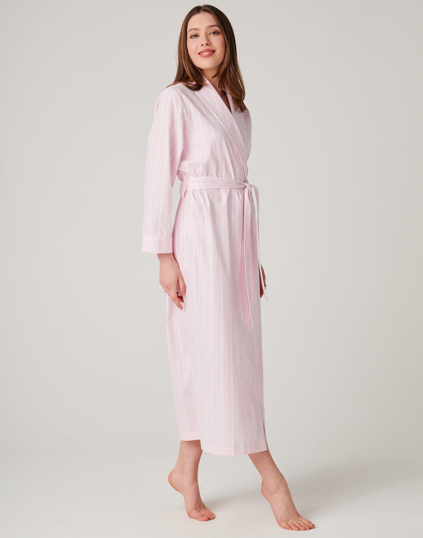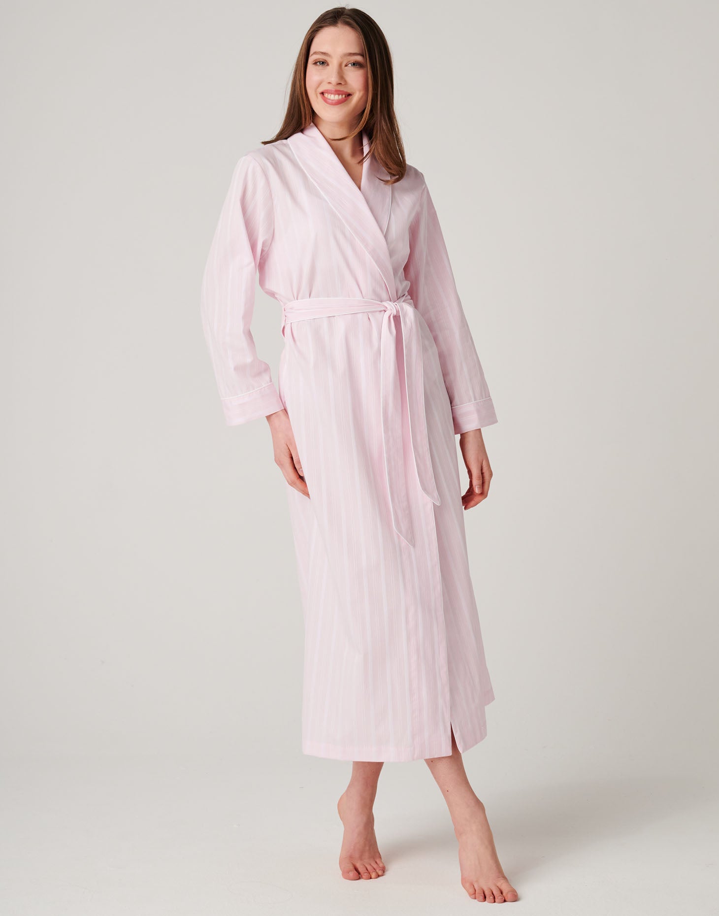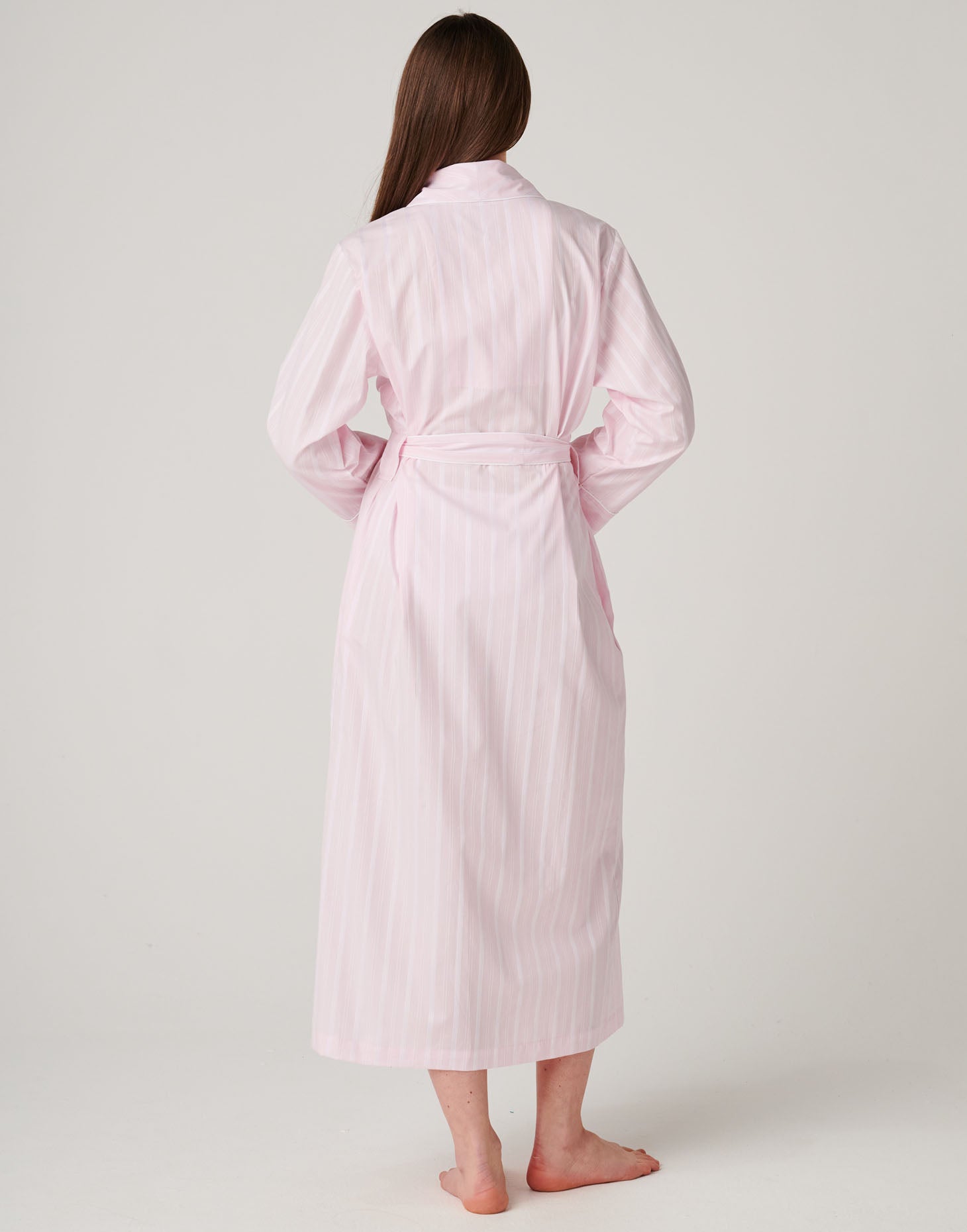 Women's Crisp Cotton Dressing Gown – Shell Pink Satin Stripe