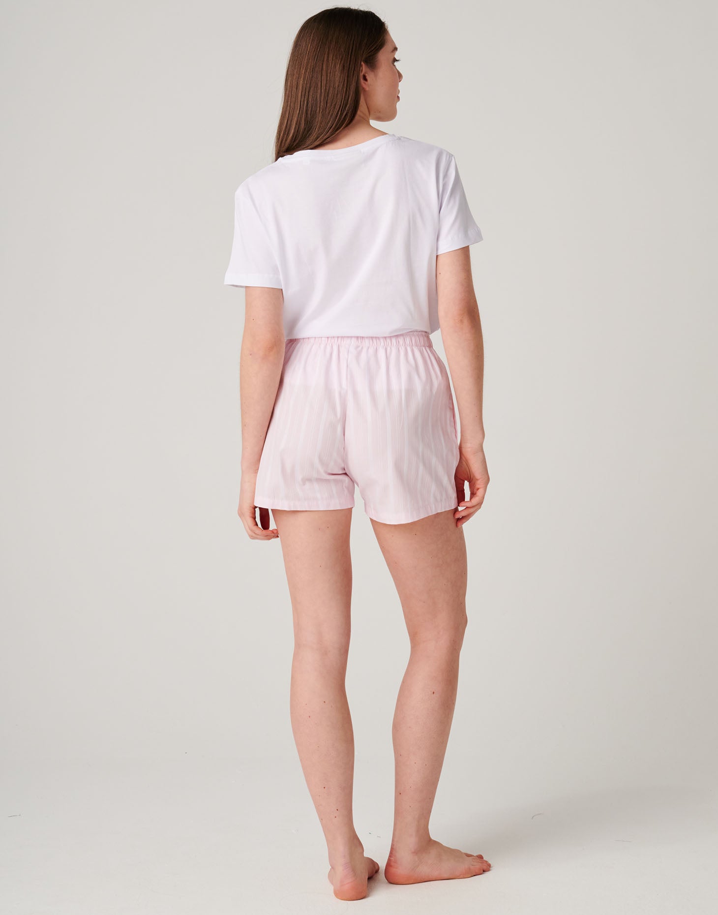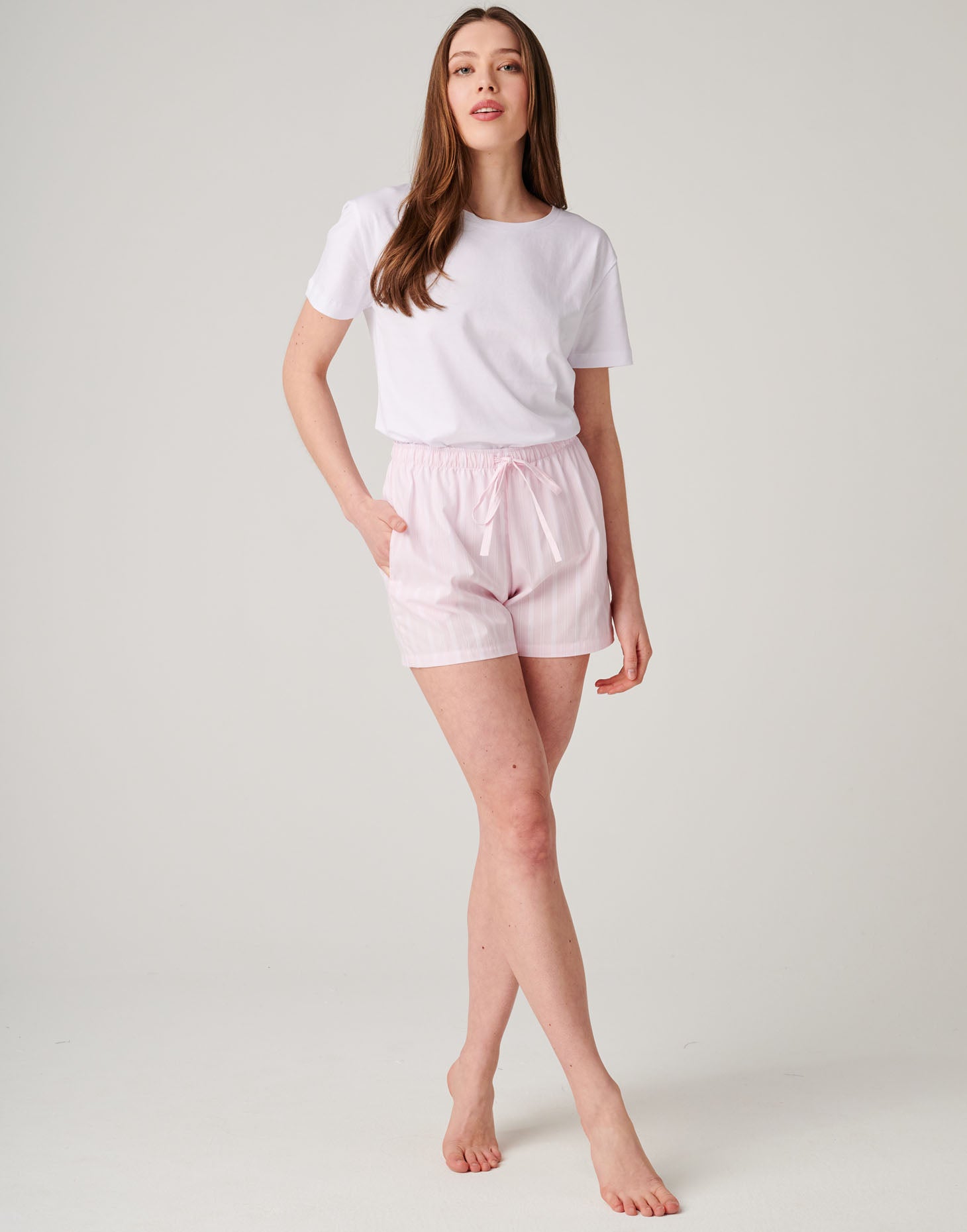 Women's Crisp Cotton Sleep Shorts – Shell Pink Satin Stripe
