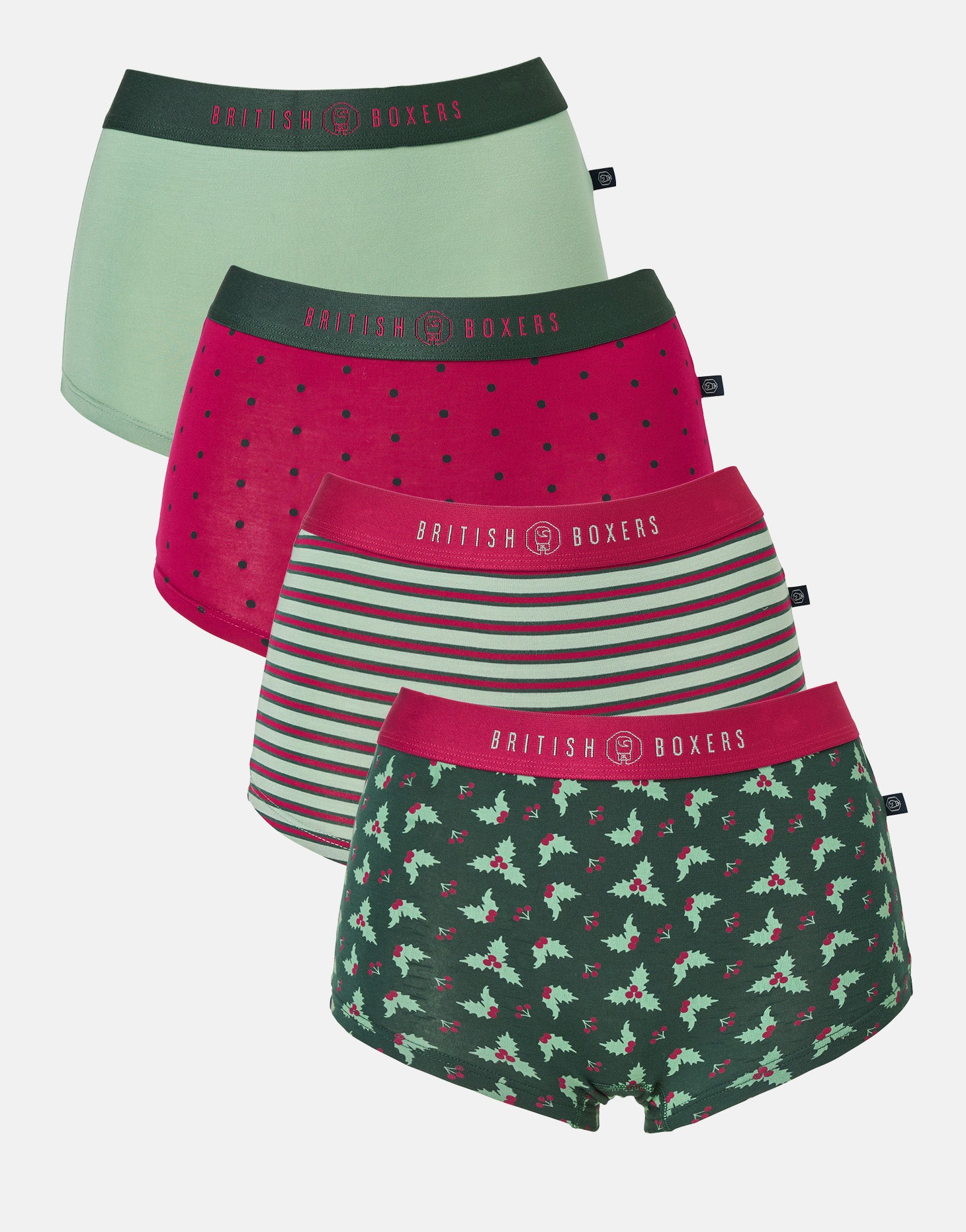 Multipack! 4 Pairs of Women's Bamboo Hipster Boxer Briefs – Forest Berry