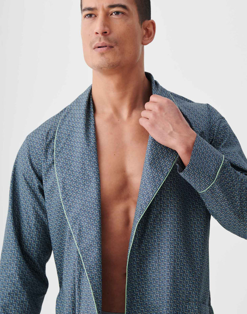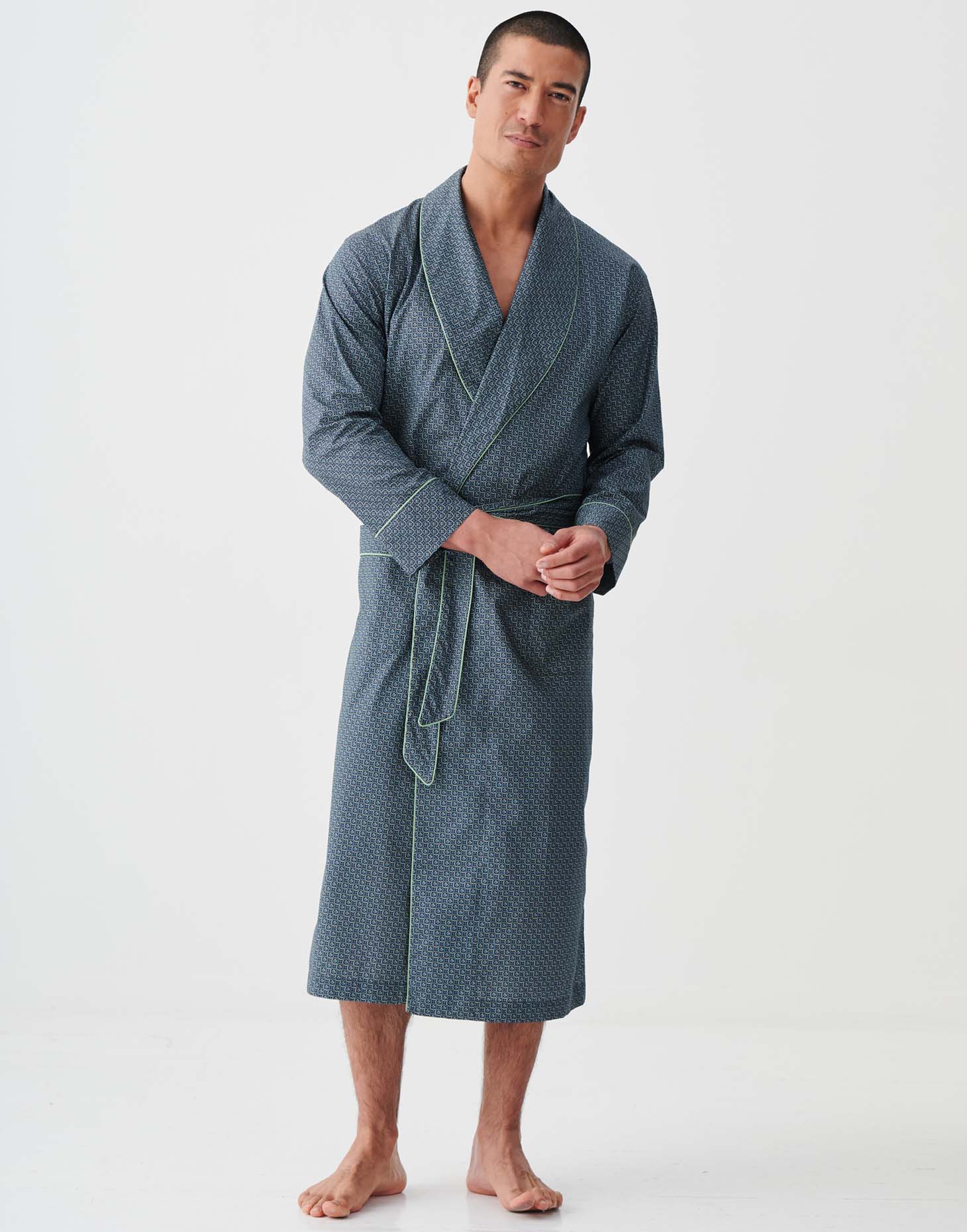 Men's Crisp Cotton Dressing Gown – Geometric Moorland