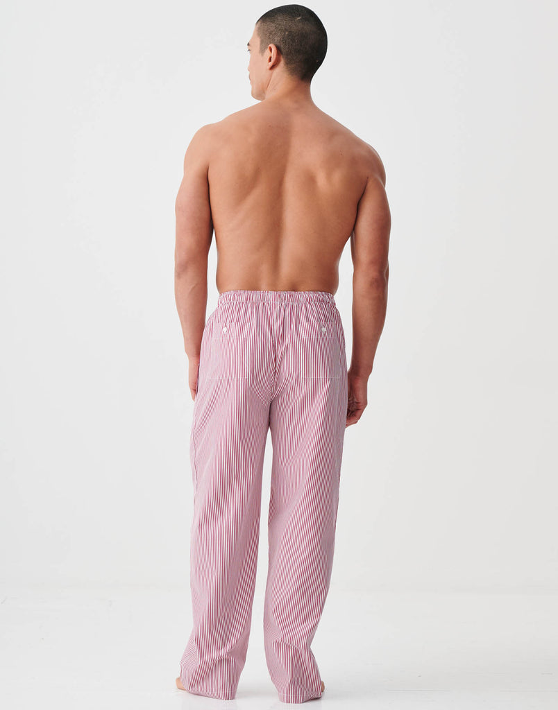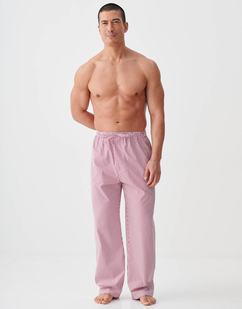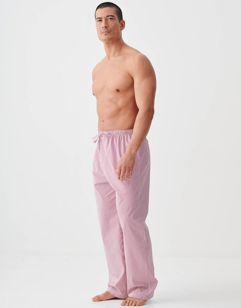Men's Crisp Cotton Pyjama Trousers - St James Red Pinstripe